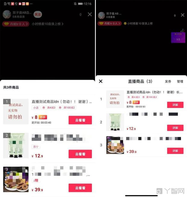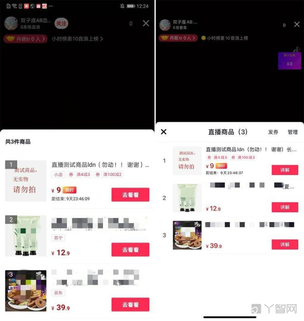 ·小店商品创建[限时特卖]活动时选择“预热” ·看播端/主播端 该商品在商品列表中显示:“秒杀,距开始时间”(左图观众端样式,右图主播端样式)