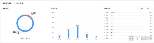·更新时间:次日更新 1. 浏览次数:本场累计看过直播的人次 2. 购物袋点击次数:本场累计看过直播且点击购物袋的人次 3. 商品点击次数:本场累计看过直播且浏览商品的人次 4. 最高同时在线人数:本场直播最高同时在线用户数 5. 本场新增粉丝数:本场直播结束后,从非粉丝转化为作者粉丝的用户数 6. 人均观看时长:本场直播有购物车曝光的用户人均观看时长 7. 粉丝人均观看时长:本场直播有购物车曝光的且是粉丝的用户人均观看时长 ·第③部分:看播用户画像、本场支付画像