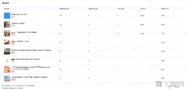 ·更新时间:次日更新 1. 地区分布:按省份、城市;只展示Top10,其余不展示。 2. 若是直播中场次,则次日更新 · 第④部分:流量来源 · 更新时间:按分钟实时更新 (待补充图片 ) 1. 展示各核心流量来源数据及占比 2. 鼠标移入展示节点对应数据 3. 提示气泡:本场直播浏览人次核心来源渠道 · 第五部分:商品排行 · 注意:仅支持展示小店商品的交易数据(订单/金额) 1. 直播间浏览次数(次日更新):该场直播间,对应商品的气泡曝光PV 闪购卡片曝光PV 商品列表曝光PV 2. 直播间点击次数(次日更新):该场直播间,对应商品的气泡点击PV 闪购卡片点击PV 商品列表点击PV 3. 支付订单数(按分钟实时更新):本场直播间,对应小店商品支付订单数 4. 讲解时长(次日更新):本场直播间,对应小店商品,主播从讲解至取消讲解的时长,如果有多段则累计。