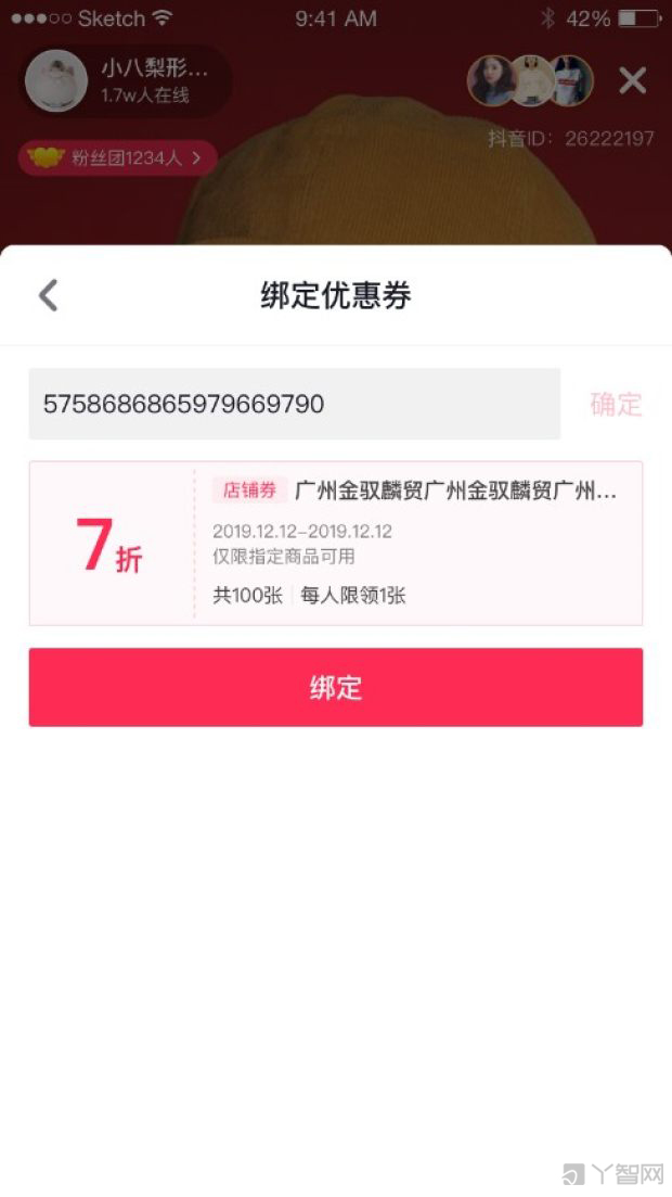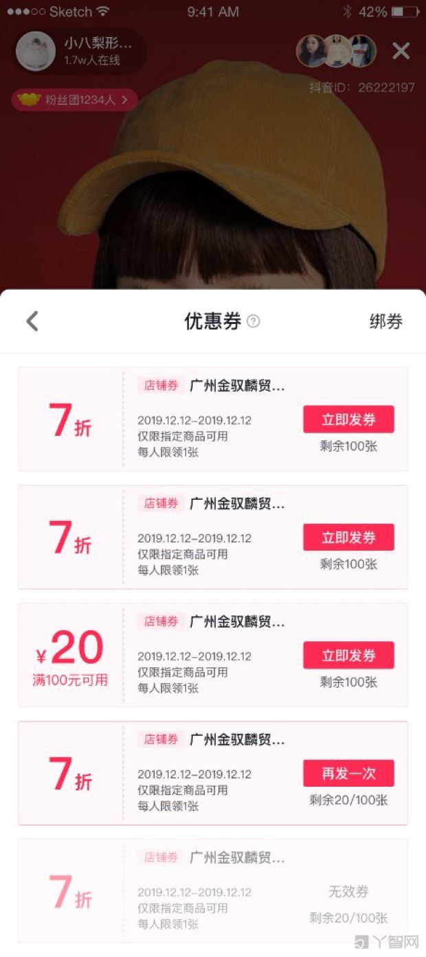 2、发布小店优惠券 1)主播端发券操作 # · 优惠券绑定 o 直播开始后可进行优惠券绑定:点击购物袋--发券--绑券--输入优惠券批次号--确定---绑定; o 直播间优惠券绑定数量限制:30; o 优惠券必须在可领时间范围内,可发放数量大于0且状态有效,才可绑定;!