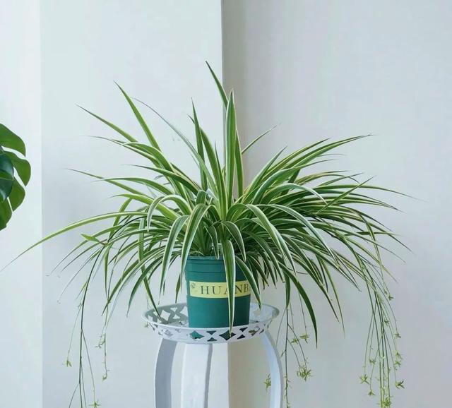 吊兰是一种草本植物,因为可以吸收甲醛而出名,吊兰的特色在于花剑后面可以长出很多小吊兰,把它悬挂起来,就像空中仙子,无比优美,又显得潇洒飘逸,很符合现代装饰的居家风格,能打造出一种绿意盎然的景色。