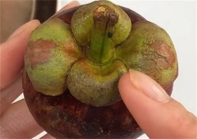 接下来就是剥山竹的技巧了。我们需要找到山竹的顶部,找到两个“小耳朵”一样的位置。这两个位置是山竹果实裂开的起点,用手指捏住它们,轻轻一捏,山竹就会完整地分开。