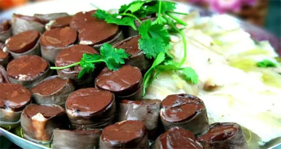 3. 东北血肠 东北血肠是一种将猪血灌入肠衣制成的食品,通常与酸菜、粉条等搭配炖煮。本地人喜爱的血肠可能因其浓烈的味道对外地人来说较难适应。