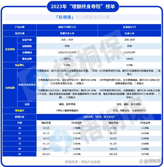 三、有哪些比较好的终身寿险产品? 增额终身寿险的最大作用是实现财富稳定增长,因此好的产品必然得有较高的收益率,以下两款产品就属于其中收益率相对较高的,可供大家参考。