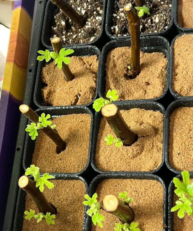 扦插方法 扦查基质,可以用沙土、蛭石或者珍珠岩,选取半木质化的枝条,不要选择已开过花或者刚刚凋谢的枝条,这样的枝条养分含量较低。修剪成十厘米左右的插穗,顶端留一对叶片,带有2到3个健壮的芽点,切口要整齐,提前浸泡在多菌灵溶液中,防止发生感染。然后将枝条插入土壤的三分之1到3分之二处,然后浇一遍透水,注意周围的温度在25度左右,注意遮光处理,大概3到4周可以生根,并逐渐发芽。