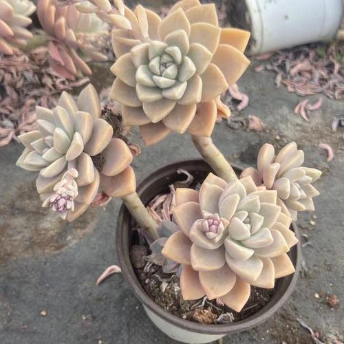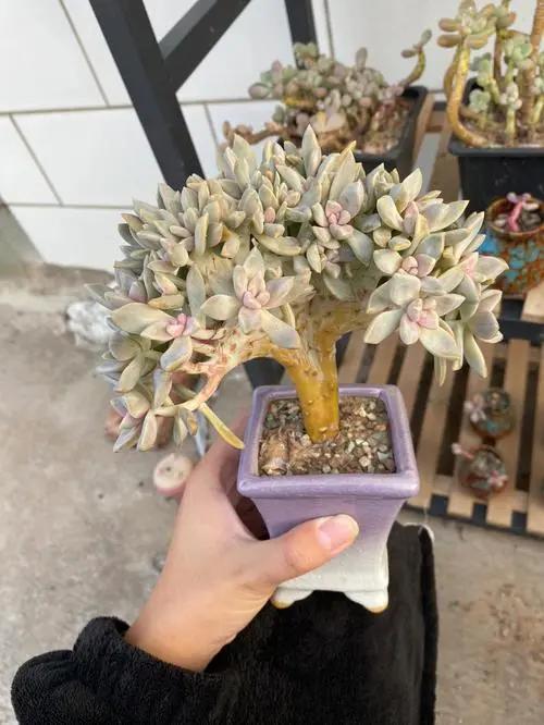 3、营造氛围 想要凸显出浅雪多肉的美,最好的就是一个简单朴素的陶盆,底部细,中间圆,这样才能衬托出老桩的淡雅之气,给人一种温柔恬静的感觉。 为保证花盆的稳定,又能防止坑底积水,可在盆底铺上小石子或碎瓦,这样既能加强底座的稳定,又能起到沥水层的作用,保证植株的生长环境; 这样既能达到实用的效果,又能和雪色多肉的柔美搭配在一起,给整个造型增加一种古朴典雅的韵味。在这种花盆里,多肉植物一定会开出更加诱人的青春。