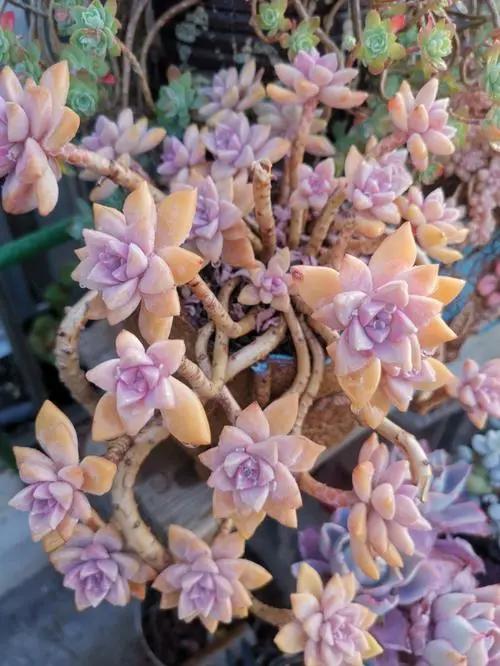 2、多肉淡雪 这是一种名为“淡雪花”的多肉植物,乍一看,就像是天上的一缕轻烟,灰扑扑的,无名无名,但经过时间的打磨,却渐渐显露出了一种神秘的韵味。 新长出来的叶子中间,点缀着不同颜色的粉紫色,宛如天使的笑容,给人一种神秘的感觉。它们就像透明的果冻,散发着黄色、绿色、橙色的光芒,就像精灵的羽翼。