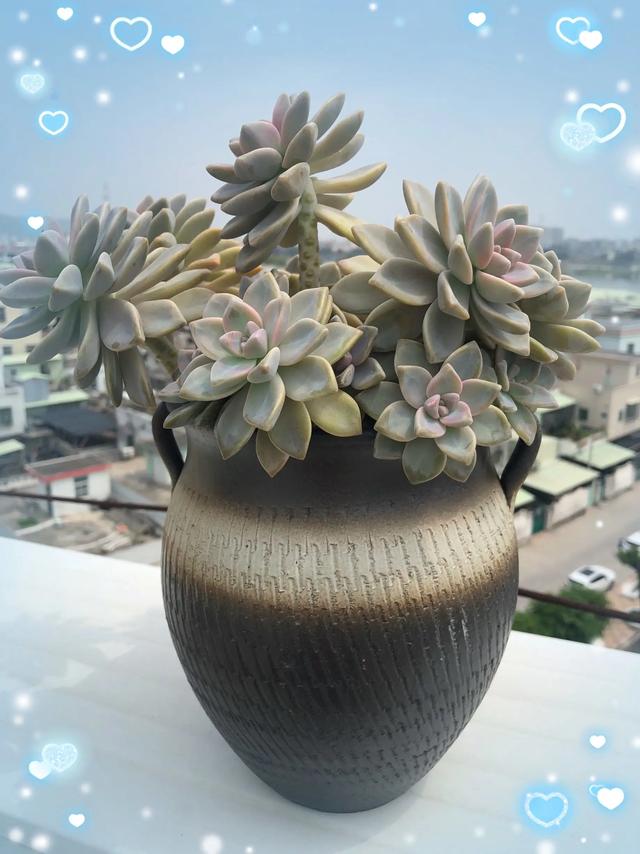 1、多肉阳台 这几株多肉就像是大自然中的精灵,轻轻垂下,犹如梦中的仙女,一瓣瓣轻轻相连,构成了一副美丽的画面; 它们从主干上优美地垂下,像一条温柔的小溪,静静地流过,把生活的美好传达给每个角落。 这一盆多肉的叶子就像是一件精美的艺术品,饱满而丰满,组成了一个完美的莲座状,一片片花瓣像是荷花一样娇嫩; 尤其是那几只浅白色的小狗,就像是一群圣洁的精灵,在绿叶之间翩翩起舞,给人一种恬静、纯粹的感觉,让人有一种置身于童话世界的感觉。