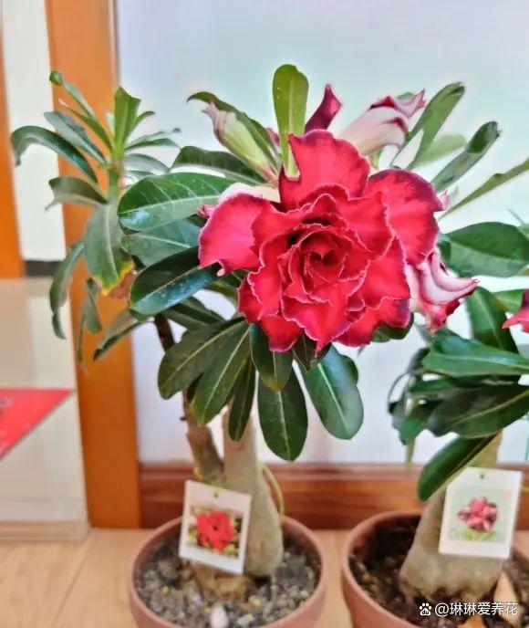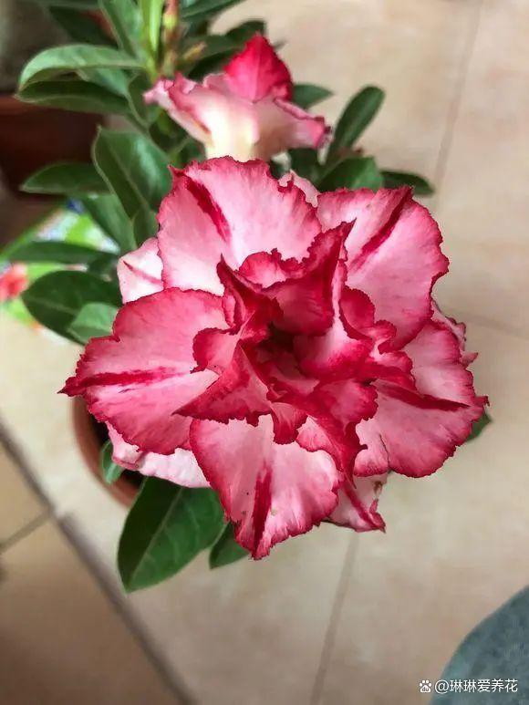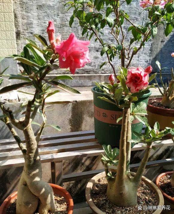 入冬了,沙漠玫瑰照样开花,山东温差大,很适合生长开花 沙漠玫瑰是一种大型的块根植物,根系生长的比较粗大,成年母本的沙漠玫瑰直径可以达到接近20公分,有一些极为个别的沙漠玫瑰品种,大的肚子可以达到40公分,超大的母本也是非常壮观的,越大的肚子,越需要经过长时间的沉淀。