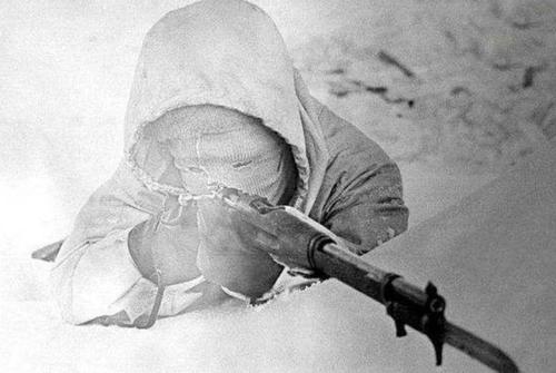 苏芬战争爆发的时候,西蒙·海耶25岁。同所有的神枪手一样,他成为了狙击手,为了保卫祖国而奋战。 西蒙·海耶下士被编入芬兰陆军第34团第6连,担任狙击手,参加了柯拉战役。 军官们没有限制西蒙·海耶他们如何作战,由此他们最大的发挥了自己的能力。 自然,苏军拙劣的表现也帮助了他们。 芬兰冬季的野外,温度可以达到零下40度。苏军由于准备不足,出现大量冻伤的情况。 而且,他们过于轻敌,采用人海战术冲锋,行军时候也不注意警戒。 他们的后勤物资不足,一旦被包围后往往只能坚持一到二天,就会被冻死饿死。 更夸张的是,苏联军队都没有分发白色迷彩服,使得芬兰方的狙击手能轻易发现他们。 此时的西蒙·海耶携带苏联的莫辛-纳甘步枪。 同其他狙击手不同的是,西蒙·海耶超一流的枪法,让他根本不适用瞄准镜。 这样一来,西蒙·海耶的狙击距离不会很远,一说通常只在400米左右。 然而,西蒙·海耶是极为擅长隐藏自己的。 他身穿白色迷彩服,以雪地作为做好的隐藏物。 他的步枪没有瞄准镜,就不会在阳光下反光暴露自己。他隐藏在一个个雪堆后面,一颗颗大树后面,根本没有人能够发现他。 他在狙击时还会将雪含在口中,避免呼出的热气暴露行踪。 有意思的是,西蒙·海耶还佩戴一支苏米冲锋枪,以对付极端的情况。 一旦被苏军发现,苏军士兵试图靠近,他就用冲锋枪对付他们。 苏米冲锋枪的精度非常高,可以做到单发近距离精确击中敌人头部。 这都是西蒙·海耶的杀手锏。 同时,苏军进攻和行军的在杂乱,无秩序,以及大清洗后军官的无能,也成就了西蒙·海耶。 在不到100天内,西蒙·海耶平均每天都击毙5个苏军士兵。