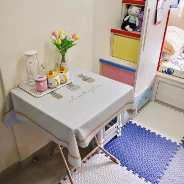 5、学习区 在简单的衣橱旁,一张方桌被巧妙地安排在一起,它既是写字的地方,也是读书的地方; 这是一张多功能的桌子,可以让孩子在家里看书、写东西,也可以为孩子提供一个安静的学习环境。