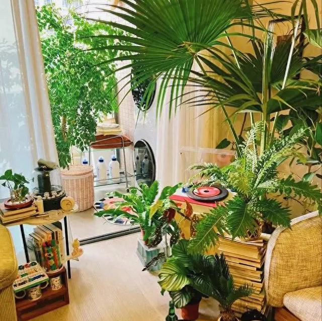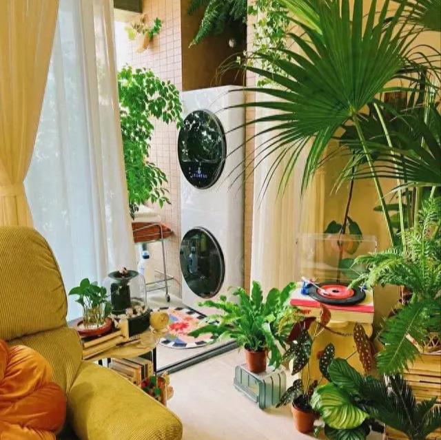 而在阳台的右边,则是一台全自动洗衣机,可以让洗好的衣服舒舒服服地躺在里面,不用担心被植物和洗衣机抢地方,也不用担心弄脏了干净的衣服。 在这座花园般的露台上,也是一位深谙花木之美的屋主的心灵所在,靠着围栏的位置,开出了一朵又一朵娇艳的小花,像是天上的繁星,将这一片区域照得一片通明。