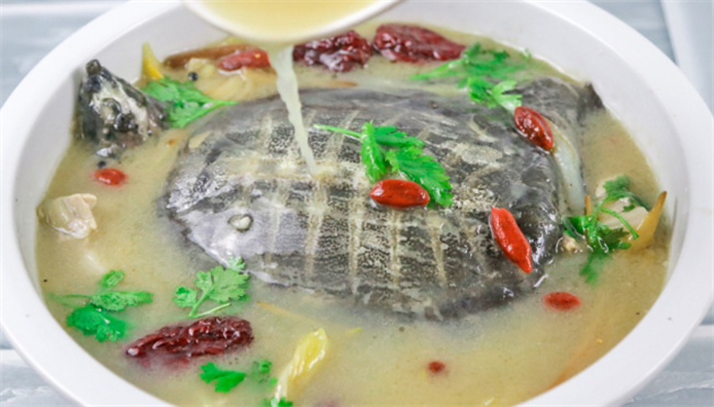 为了保证甲鱼肉质嫩滑,汤鲜又美味,甲鱼加桂圆,山药,瘦肉,红枣,生姜,煲汤好喝。甲鱼汤含有丰富的蛋白质、脂肪、钙、铁等多种营养成分,还有各种维生素,有滋补壮阳的功效。