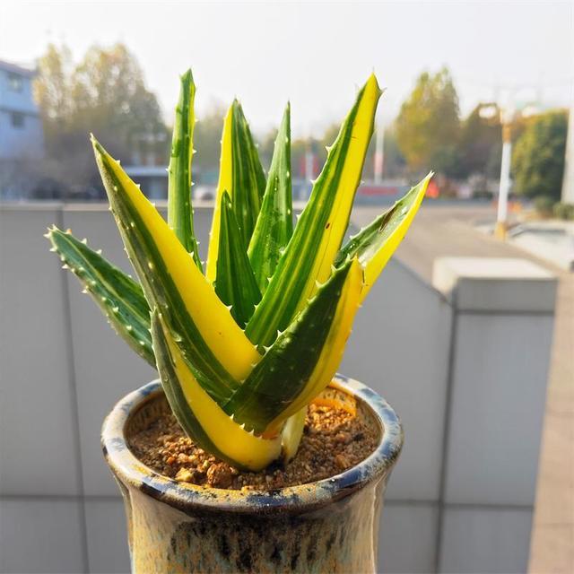 它基本不需要打理,只要给它足够的水分和养分,一年之内,它的花盆就会被撑得满满的。 如果是朝南卧室的窗台,夏天就要改变一下位置,芦荟虽然耐高温,耐阳光, 但是长期暴露在强烈的阳光下,还是会影响它的生长,超过35摄氏度,就会陷入暂时的休眠期,要注意控制浇水,避免高温和高湿引起的腐烂。