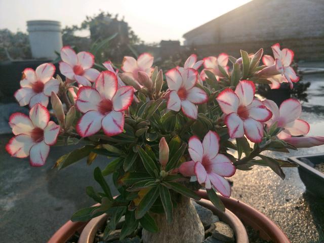 4、沙漠玫瑰 沙漠玫瑰就更不用说了,我有一次就是因为它的死亡而给我留下了深刻的印象。沙漠玫瑰的种类很多,虽然不是玫瑰花,但胜在漂亮,开花时间也很长,这也是为什么要种植这么多的原因。沙漠玫瑰不能用大盆来种植,并且所用的土壤至少要有60%的颗粒土。只有这样,才能满足它的要求,既要有良好的透气性,又要有一定的保水能力。 沙漠玫瑰喜日照,需要全天候的日照,如果用大盆栽培,水分无法及时排出,尤其是夏季,炎热的天气,潮湿的土壤,温度会很高。要想让沙漠玫瑰开得漂亮,最好的办法就是用小花盆,用特殊的土粒,少浇水。