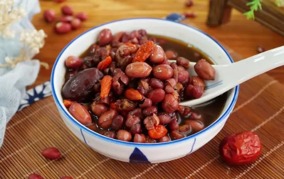 五红汤用哪五种食材「五红汤」各食材的作用: ① 红枣:富含蛋白质、维C维A等,能益气养血,改善血虚、贫血。 ② 枸杞:养肝明目又润肺,还能帮助增强造血功能、提高免疫力。 ③ 赤小豆:能祛湿、消肿,还能清热退黄。 ④ 红皮花生:富含铁元素,能补气养血。 ⑤ 红糖:有健脾暖胃、益气补血、活血止痛等作用。 |