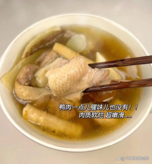 沙参茯苓玉竹炖鸭汤是我们家秋天爱喝的汤品,营养价值出色,汤汁特别鲜美,喝起来很舒服,补气护肝,调理气血,还能赶走身体的湿毒,免受疾病的困扰。