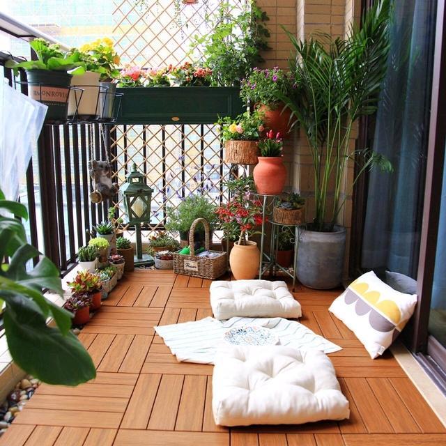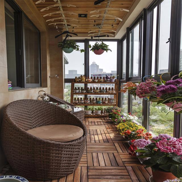 4、制作一个可以储物的榻榻米 在家中,榻榻米经常会派上用场,在阳台上搭一个,不仅能当板凳,还能当储物用,尤其是阳台上摆放的那些花草用具,这次也有空间放东西了。 总结: 一个三、五平米的阳台,就可以创造出如此美丽的花园,还非常实用,与其把时间浪费在堆放杂物上,还不如赶紧进行装修! |