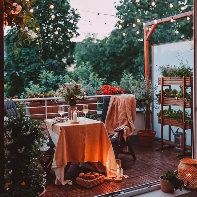 2、摆一张桌子,吃一顿,喝一杯 如果有足够的地方,就在自家的露台花园里,摆上一张小桌子,一边享受着早餐,一边欣赏花园里的风景,偶尔也可以跟街坊邻居们说说话。