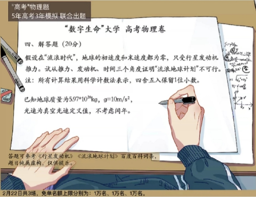 2月22日饿了么免单解题思路我试了下不知道解得对不对,大佬帮算算,想想思路 我的想法是:证明单台发动机推力不足;证明发动机数目不够;证明需要加速时间超过500年 推力:每台发动机需要5.7*10^4亿吨 发动机:需要3.8*10^6台 时间:需要1.9*10^5年 |