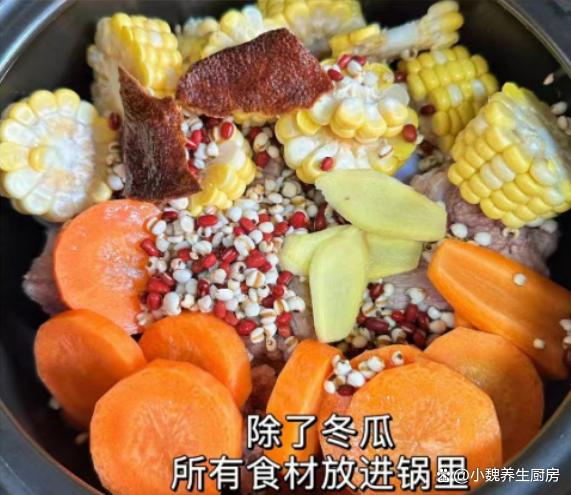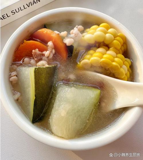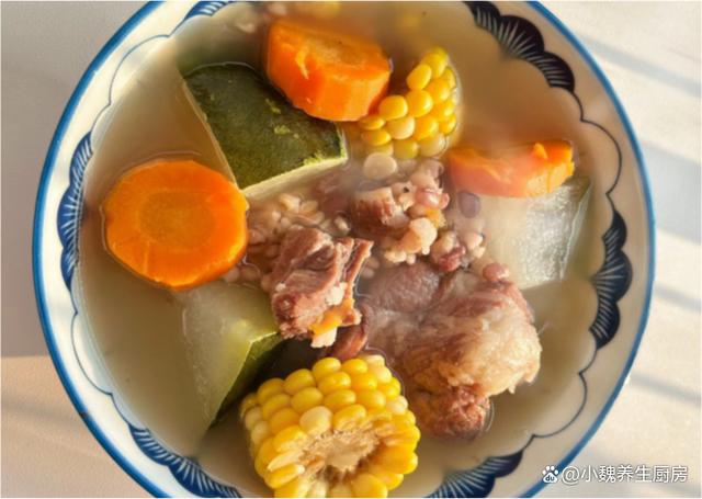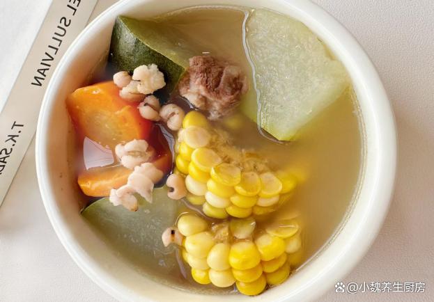 湿气的“克星”找到了。8月多喝这汤,祛湿健脾,身体保平安!进入8月中下旬,秋天从立秋开始,但是似乎炎热的气温没有结束,但是再过几周的时候,要送走三伏天,然后会越来越凉爽,经常会出现秋雨,温度就开始慢慢降低了。很多南方人非常头疼,经常被湿气困扰,身体出现浮肿,肚子鼓鼓非常难看,舌苔发白,整天也没有劲,很可能是湿气太重,会影响我们的身体健康。平常要正常作息,少熬夜,多运动,多吃新鲜的蔬菜和瓜果,还可以尝尝这款家常汤品——玉米冬瓜薏米猪骨汤,此汤做法很简单,汤汁鲜美,好喝不油腻,内行人经常吃。秋天一碗汤,身体保平安!记得要多喝这汤,营养全面,健脾又祛湿。