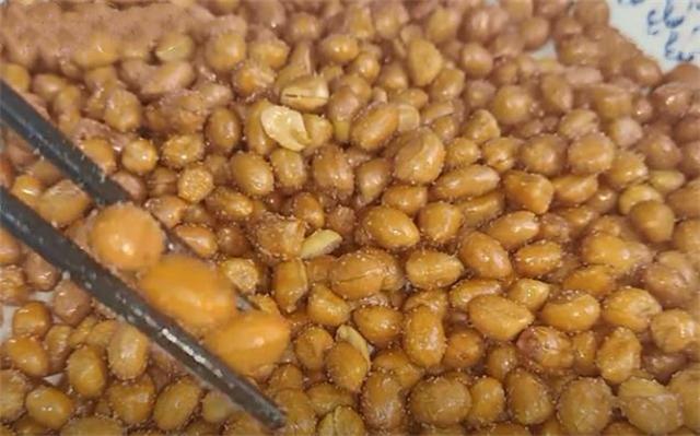 7.搅拌均匀之后,这时我们往里面加入适量的食用盐,很多朋友都不知道炸花生米撒盐的时候,是炸好之后撒盐,还是放凉以后撒盐,其实那都不对的,如果是刚刚炸好之后撒盐,盐一遇热,就会融化掉了,这样炸出来的花生米容易返潮,冷凉之后再撒盐的话,盐就粘不到花生米上面了,所以就是等花生米炸好2分钟之后,然后再给它撒盐,这个时候是刚刚好,撒的时候也不需要撒的太多,稍微撒一点就可以了,如果撒的太多的话,吃起来会咸,我们也不要直接倒,那样撒的不均匀,一定要用手撒,这样撒出来的盐咸度刚刚好,外形也非常的美观,大家看一下,特别的漂亮。