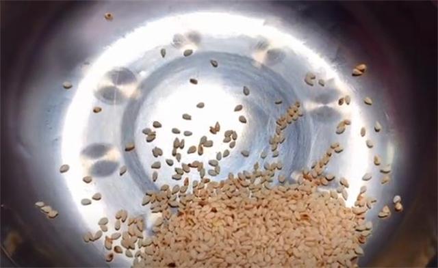 4.再准备30克左右的老豆腐,放入豆腐,可以使丸子吃起来更加的鲜嫩,而且还丰富营养,用手捏碎即可,白芝麻再准备十克,这个主要是增加香味,最好是提前炒熟。