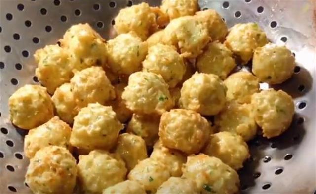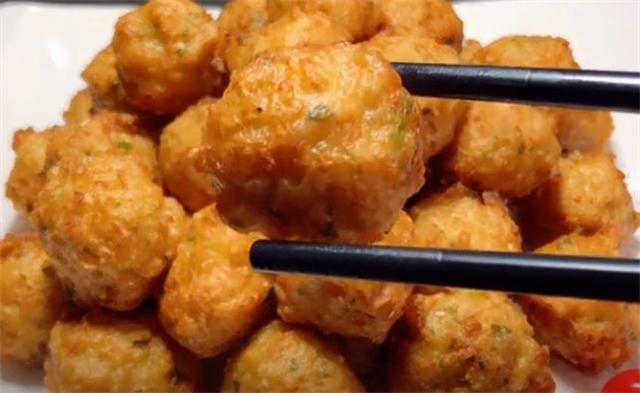 10.炸丸子油温掌握也很关键,火切记不要太大,也别太小太大,容易把外面炸焦,里边还不熟,太小容易散,保持中小火炸制就可以。如果炸制的比较多,最好是分两锅炸,这样成型好看不易粘连,炸出一部分后先捞出来。
