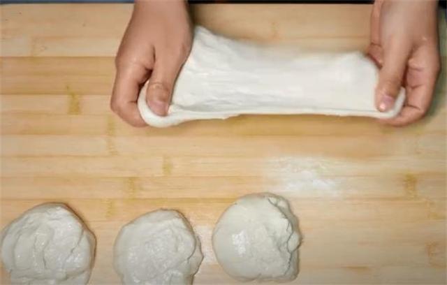 4.案板上涂抹少许油,饧好的面团不要揉,直接开始搓成长条,掰成一个个小剂子,掰好的剂子拉成长条,薄一点比较好,但是也不要太薄,会破的。