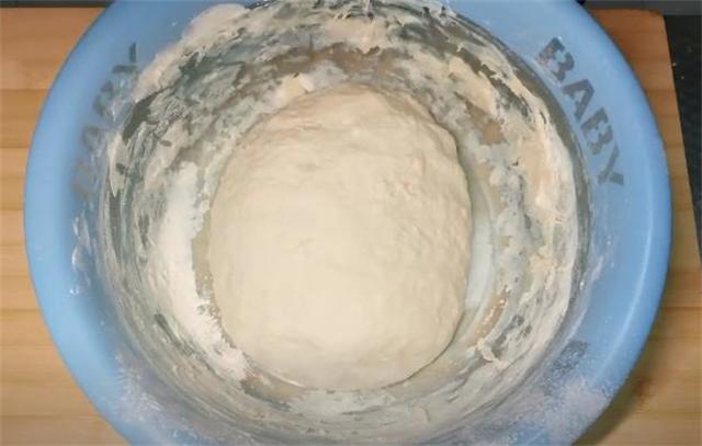 2.葱切好了,开始制作面糊,取适量面粉,加入一小勺盐,让它更有筋性,加入适量温水,边倒边搅和,不要全部倒进去,全部倒进去就成面汤了,搅拌到没有干面粉的时候,加入适量食用油,这样的面团会更柔软,主要是手感好,揉搓至表面光滑时,盖上盖子饧发半个小时。