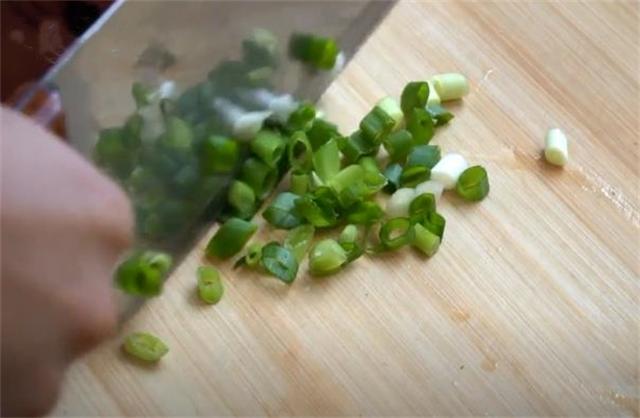 2.下面咱们处理小葱,从中间切开,然后切成末。