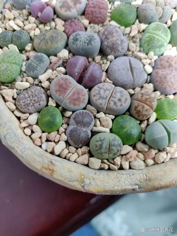 生石花大半年没浇水,入秋以后,大量补水,照样能生长开花 在多肉植物中,除了仙人球耐干旱之外,还有一个种类的多肉植物也是十分耐干旱的,它就是番杏科的多肉,尤其是番杏中的生石花,耐旱性非常强悍,在长达半年的时间里,接触不到水分,也依然可以存活下来。
