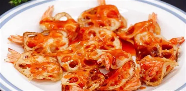二、莲藕酿虾 食材: 生姜、莲藕、虾仁、小米辣、生抽 制作方法: 1. 清洗虾仁,剁成虾泥,加入料酒、盐和胡椒粉搅拌均匀,腌制片刻。 2. 莲藕去皮,切薄片,加盐稍杀水分。 3. 将虾泥夹入莲藕片中。 4. 奶锅底垫姜片,摆入莲藕夹虾,淋料酒。 5. 盖锅盖,小火焖5分钟。 6. 出锅后装盘,点缀小米辣。