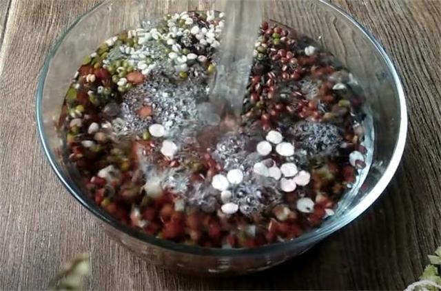 准备食材: 红豆、莲子、腰豆、薏米、绿豆、红花生、黑糯米、芡实、清水、黄糖片 具体做法: