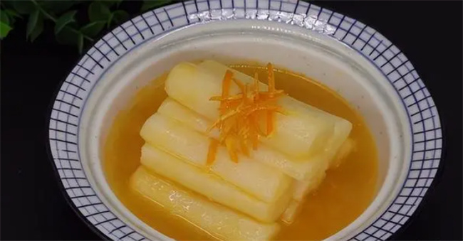 一、橙香山药条 1.选用铁棍山药,经过细心清洗去除表面泥沙,并削去表皮,注意防过敏可佩戴手套。 2.将山药切成长度一致的段,然后竖着对半切开,放入锅中,用大火煮熟。 3.取两个橙子,用盐搓洗干净表皮,削掉皮,将橙子肉切成小块。将橙子肉放入搅拌机,打成橙汁,并进行过滤。在过滤好的橙汁中加入适量白砂糖,搅拌均匀。 4.将刚刚削下的橙子皮削去白筋,切成细丝。取出煮熟的山药,沥干水分,泡在准备好的橙汁中,撒上一些橙皮丝。一道橙香山药条就完成了,既美味又诱人。 二、橙子饼 1.用盐搓洗干净橙子,用擦丝器将橙子皮擦成碎末放入碗中。 2.削掉橙子皮,将果肉切成小块。将橙子块放入料理机中,搅打成橙汁,倒入装有橙皮碎末的碗中,再挤入适量炼乳,搅拌均匀。 3.往搅拌好的橙汁中倒入适量糯米粉,搅拌成酸奶状的糯米糊,并放入一些黑芝麻,搅拌均匀。 4.在平底锅中倒入适量油,将面糊舀入锅中,摊成小圆饼,用小火慢慢煎至橙子饼两面金黄。一份香甜的橙子饼便可呈现。