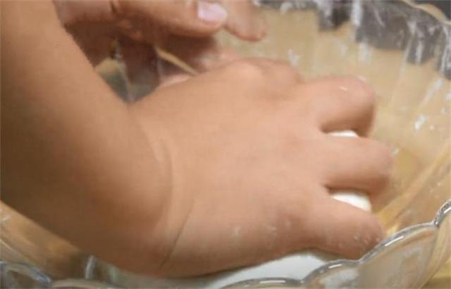 4.然后把剂子利用虎口处揉搓成圆形,把封口的地方扯长放到底部。