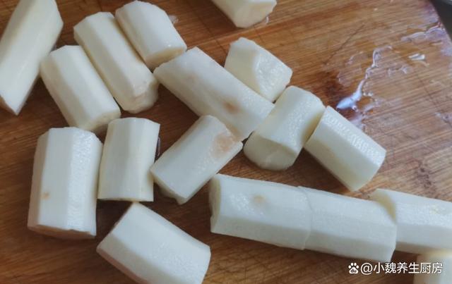 第一步:提前准备好鸽子,绿豆,赤小豆和山药,先把新鲜山药用刨子去皮,切掉两头洗干净,切成长度相同的段,备用。