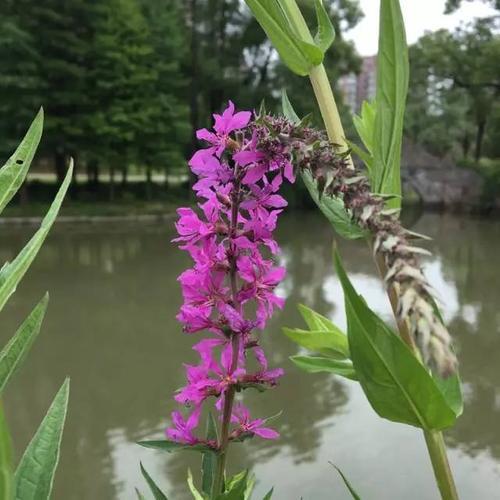 4、千屈菜 千屈草,他第一次在这座城市的湖边看到,就是一大片的千屈草,看起来很美,他就顺手摘了一株回来。 这种植物,在河流、沼泽、湿润的地方,往往会有大片的千屈菜生长,十分壮观。 本品为观赏性花卉,抗寒能力较强,喜潮湿,可栽培于庭园内、水缸内、盆栽。