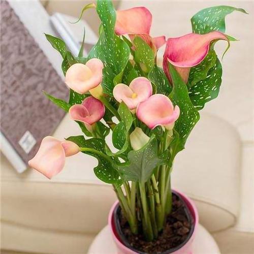3、马蹄莲 此花为多年生草,虽为草,但其花朵形似马蹄,姿态万千,极为有名。 它的花朵颜色鲜艳,叶片呈绿色,花瓣呈马蹄形,具有很高的观赏性,被誉为“花叶俱美”。 马蹄莲本身就是一种对光照要求极高,对水分要求极高的植物,在这样的环境中,只要保证水分充足,那么其生长速度将会很快。 不过,切记要保持盆土松软、通风,否则,长时间浸泡,会导致块茎枯萎。