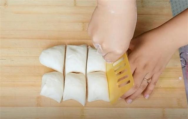 2.然后揉搓成长条,分成大小均匀的剂子。