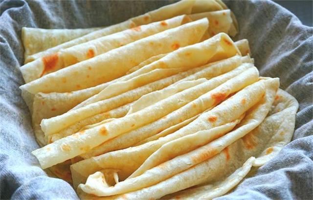 6.做好的单饼用布盖住,可以减少水分的蒸发,这样做好的饼会更加柔软有弹性,饼里夹上炒熟的蔬菜也是非常好吃,喜欢可以在家试一试。 |