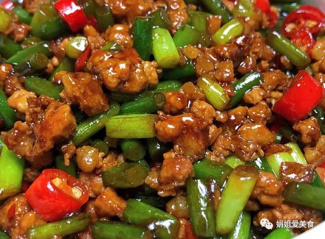 蒜薹炒肉末 用料: 蒜薹 200 克、猪肉末 150 克、蒜头 3 瓣、生姜 1 片、料酒 1 汤匙、 生抽 1 汤匙、盐 适量、糖 适量 、食用油 适量
