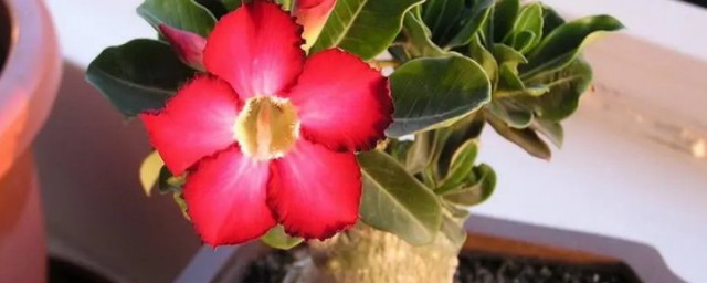 1、沙漠玫瑰是可以摆放在室内养殖的,最重要的就是满足它对光照的需求,它的原产地是非洲,喜欢充足的阳光照射,所以养在室内的话一定要摆放在阳光充足的地方,另外要注意摆放在通风的地方,不要摆放在过于潮湿闷热的角落。 2、沙漠玫瑰有着非常粗壮的根茎,里面可以储存水分,因此它对于水分的要求并不高。平时在养护的时候不用浇太多水,一般来说一个星期浇一次就行了。可以捏一下下面的主干,如果感觉有一些变软,就代表需要浇水。另外在肥料方面也不需要非常多,每个月用一到两次肥就行,因为沙漠玫瑰常年开花,所以在用肥的时候选择磷钾含量高的。 |