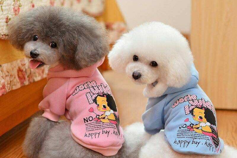 小鞋子就不必了“,衣”多必失,虽说冬天路面结冰很滑,但狗狗的汗腺在脚上,为狗狗穿鞋子使狗狗患上湿疹的。从而达到挑选小衣服时,也得有讲究呢。不必花枝招展,过于华丽;素净简单才是大方。切记小衣服的真正目的是为了保暖。配饰太多,一是反而达不到真正目的,二是小物件容易狗狗误食下去。小衣服的领口处,胸部前至少可以插进3根手指,保持宽松,棉质最好。既实用又好看的目的! |