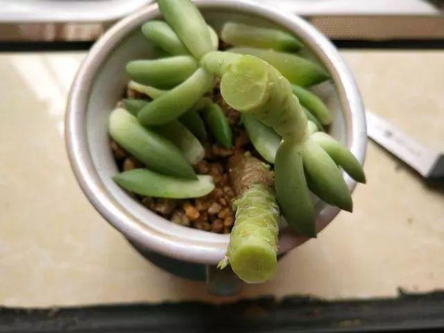 若是腐烂严重,我就把它的根茎给割下来,把它的伤口给风干了,再移栽进花盆,进行培育。 过了一个月,多肉的叶片和树枝依然是柔软的,并没有完全复原,这就意味着多肉的根部还没有生长出新的根系,还需要再次对其进行修根上盆。