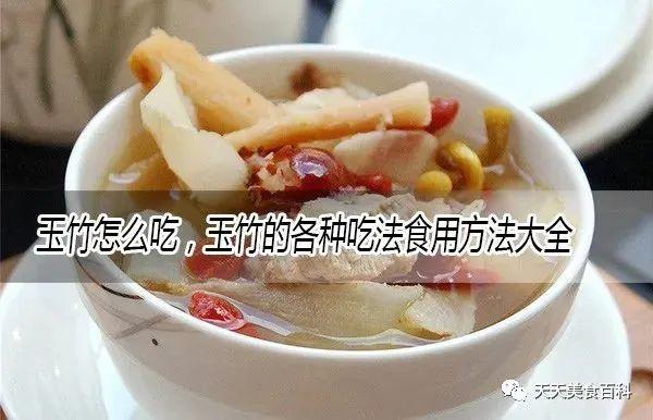 4、煲汤:玉竹还具有很好保健作用,因此还可以将其与排骨、鸡肉等食材一起煲汤喝。 二、玉竹的吃法 做法一、玉竹瘦肉汤 原料:玉竹15g,猪瘦肉100g,鸡精、食盐各适量。 做法:将玉竹洗净;猪瘦肉洗净,切薄片,两者同放锅中,加水适量,煮至猪瘦肉熟烂,放入食盐、鸡精调味即可。 功效:养阴润肺,生津益胃,适用于秋冬肺燥咳嗽及热病伤阴、舌干口渴、食欲不振等症。 做法二、玉竹粳米粥 原料:新鲜玉竹30g,粳米100g,冰糖少许。 做法:将玉竹洗净,放入沙锅中,加适量水煎20分钟,倒出汁液,加水再煎。将两次药汁合二为一,加入粳米,用大火烧开后改小火熬稀粥,粥熟后放入冰糖,稍煮一两沸即成。 功效:滋阴润肺,生津止渴,适用于高热烦渴、口干舌燥、阴虚低热不退等症。 做法三、玉竹炒藕片 原料:玉竹15g,莲藕200g,胡萝卜50g,植物油30g,胡椒粉、料酒、食盐、味精、姜末各适量。