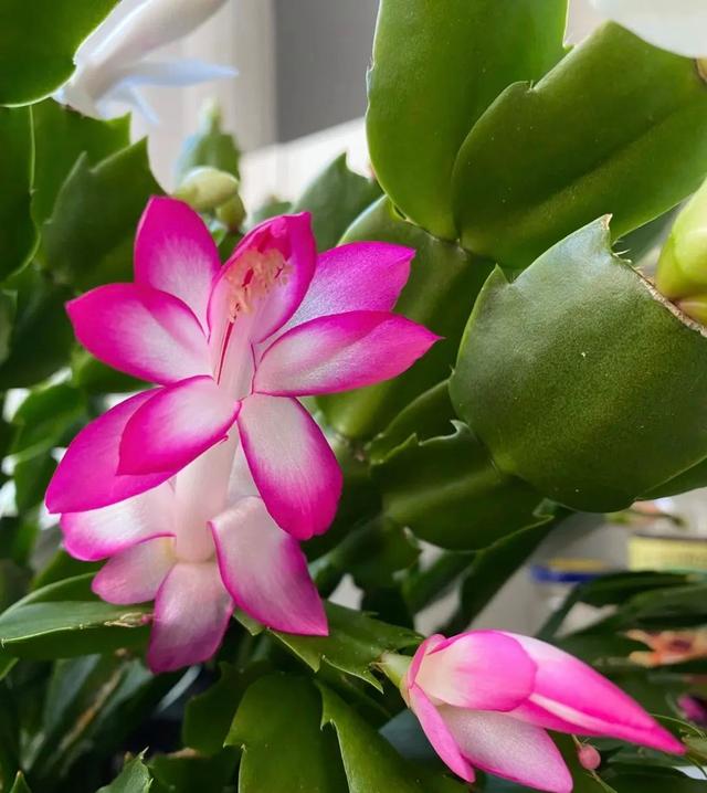 很多人因为蟹爪兰的根系薄弱,所以会把它嫁接在仙人掌上,因为这两者是同属性花卉,可以轻松长在一起,利用仙人掌的先天优势,便可以开成一个大花球。