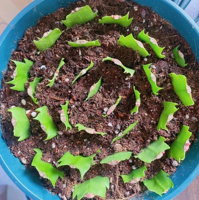 除了分株之外,也可以用叶片扦插,剪下一片健壮饱满的叶片,把叶片剪成十厘米的小段,注意上下方向,千万不要弄反,把它提前浸泡在生根液中一段时间,取透气性好的土壤,整齐的插入土壤中,大概15天便可以生根发芽。 蟹爪兰