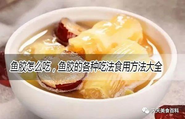 关于鱼胶怎么吃,小编推荐的是单独清炖,这样鱼胶中的营养基本不会走失,而且在做鱼胶的时候尽可能不要用水泡,因为用水泡久了胶质是会流失一些的,而且不用炖太长时间,一般2-4个小时就可以。毕竟鱼胶是从鱼身上取来的,所以还是会有点腥味的,如果实在是不喜欢腥味的也可以加入一些去腥的佐料可以选择喝杯温开水,记住要空腹吃效果最佳,因为空腹更利于营养物质的吸收。其实鱼胶的吃法也是有很多的,不过要说更营养那就是单独炖着吃了。每次吃15-20g就可以了,一周吃2-3次就好。 鱼胶的吃法 如果喜欢将鱼胶和其他食物一起吃来改善口感也是可以的,鱼胶红枣汤的做法也很简单,鱼胶1、红枣加水炖大概2-3个小时放入冰糖就可以吃了,而且具有一定的去腥作用,对于补气血、养容有很好的帮助。鱼胶也可以和肉食一起煮,像鱼胶排骨汤也是不错的,像平时煲排骨汤的方法就可以做好了,美味又滋补。鱼胶还可以放到粥里煮,适当加入一些枸杞做成鱼胶枸杞子粥也具有很好的养生作用,可长期这样吃。
