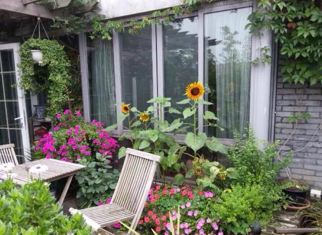 那好,我叫她把后院的土都给翻开,去掉垃圾土,填入营养土,改良下土壤就没问题。 没想到,才3天时间,她老公就联系了土方,把家里院子里的垃圾土全换了。真的是个好老公。 小院重新整理之后,大妈又买了50包发酵养分撒了进去,这下这个小院是名副其实的植物天堂了。